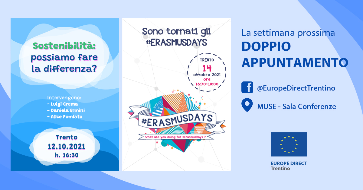 Eventi Europe Direct Trentino ha organizzato un doppio evento in cui parlerà di "Sostenibilità" e "Erasmus".