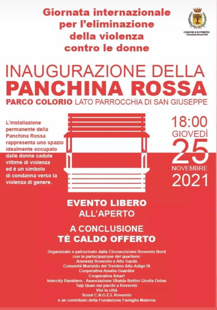L'installazione permanente della Panchina Rossa rappresenta uno spazio idealmente occupato dalle donne cadute vittime di violenza ed è un simbolo di condanna verso la violenza di genere.