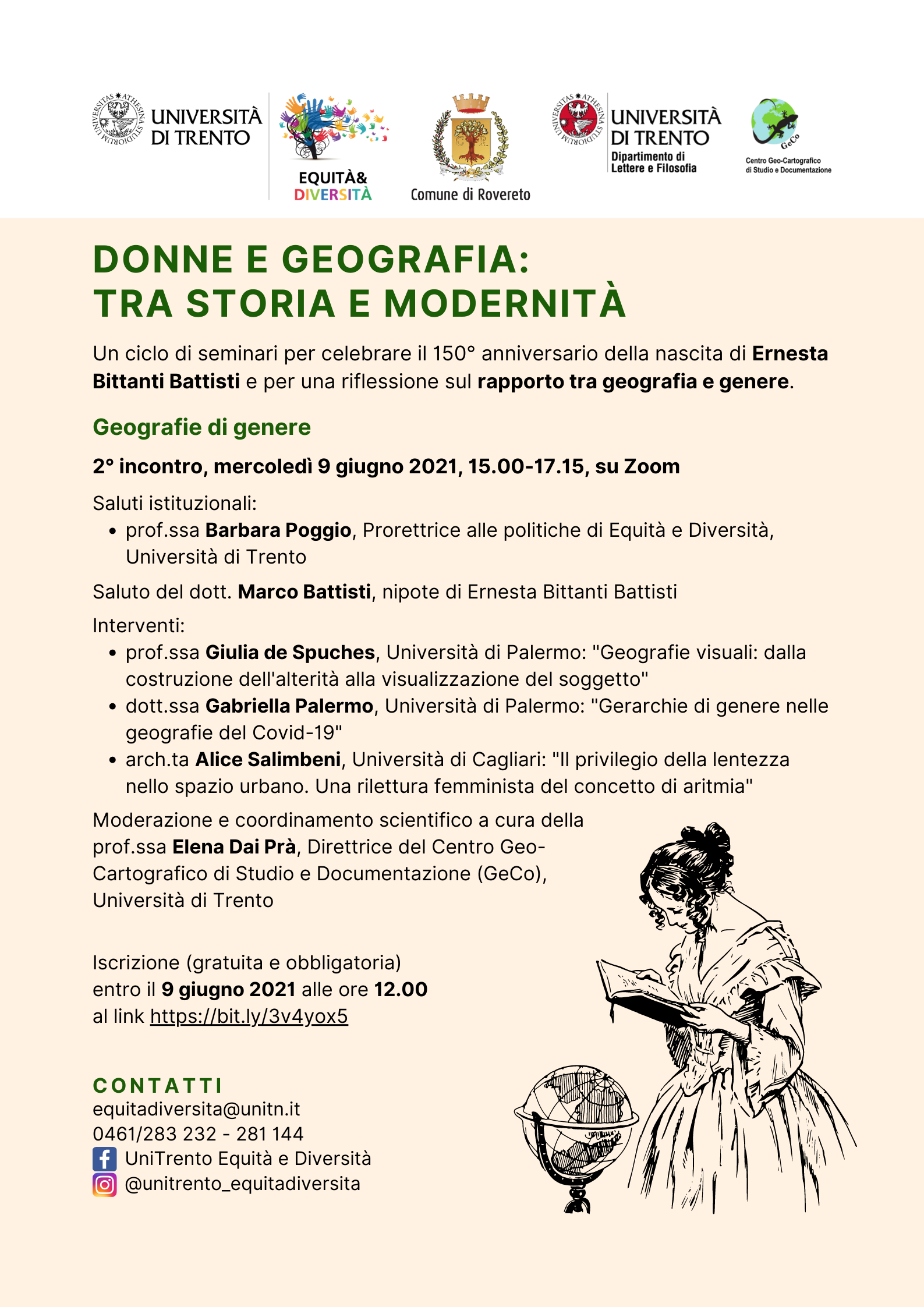 È l’occasione per riflettere su questi temi ci è fornita dal centocinquantesimo anniversario della nascita di una grande intellettuale, Ernesta Bittanti Battisti. In questo secondo incontro, si parlerà della geografia di genere e del ruolo da essa svolto per comprendere il rapporto tra spazio e genere.