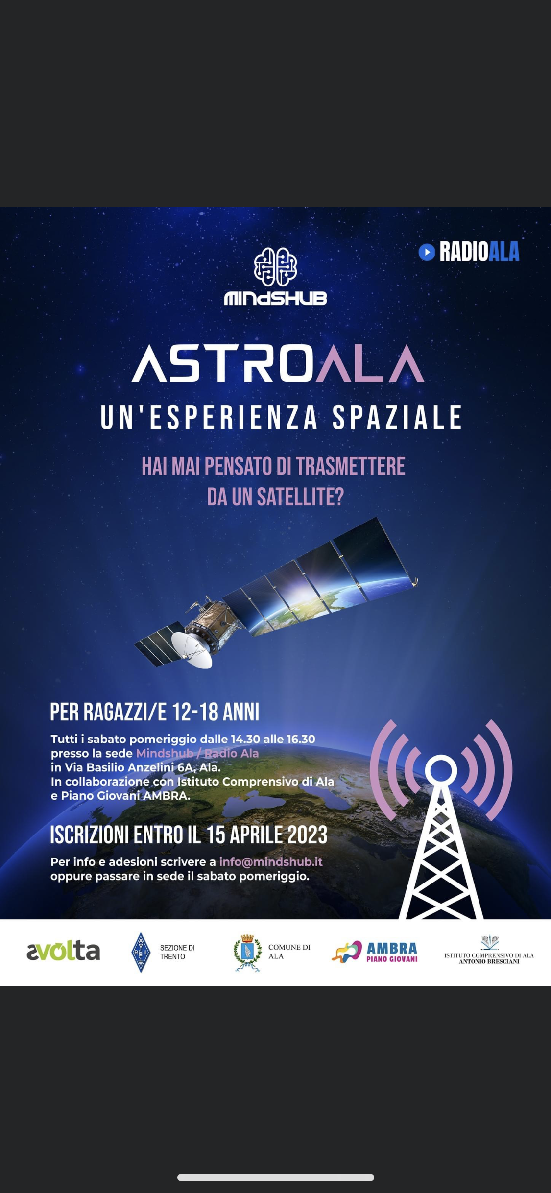 Tutti i sabato pomeriggio dalle 14.30 alle 16.30 presso la sede Mindshub / Radio Ala in Via Basilio Anzelini 6A, Ala.
