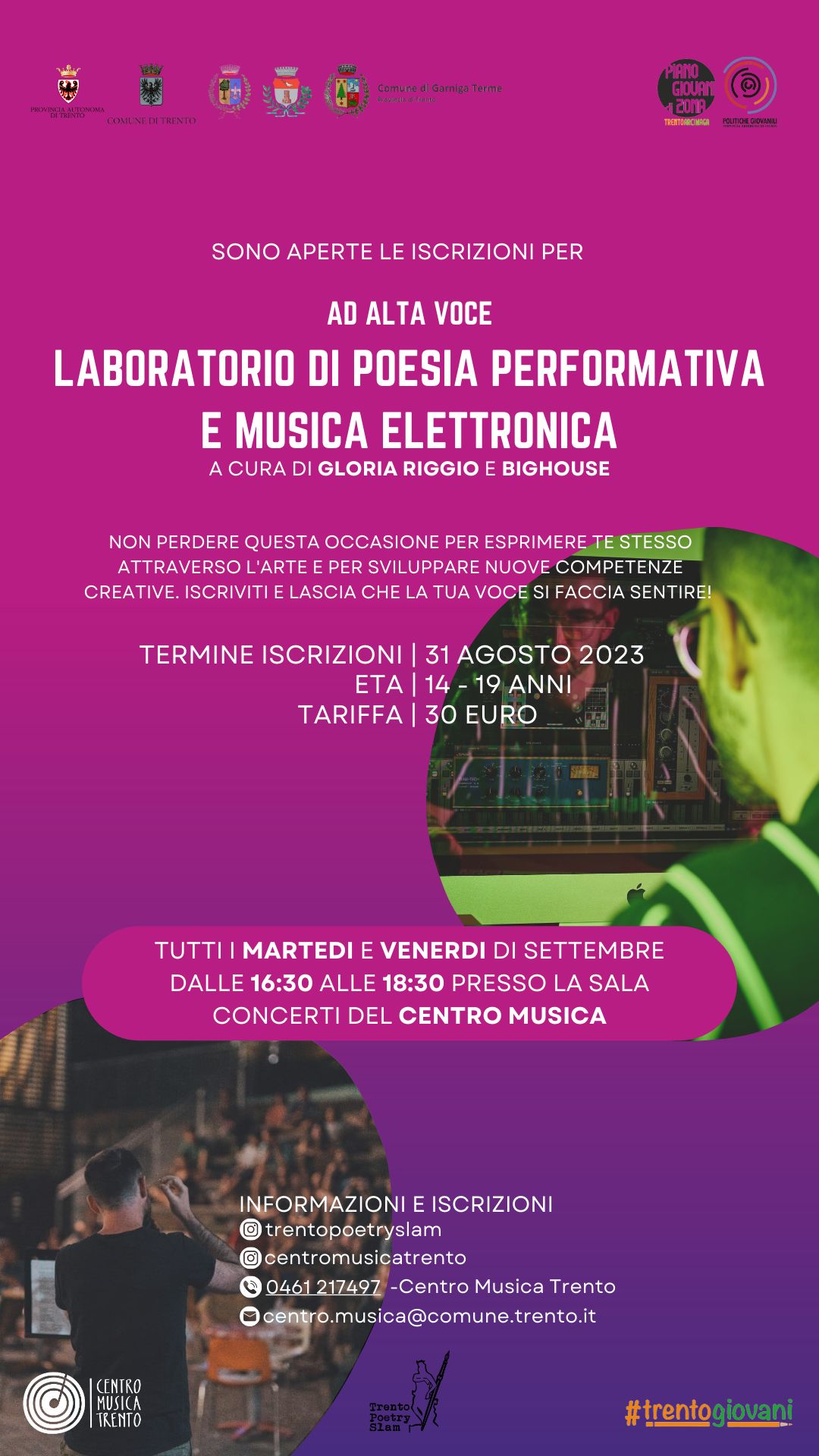 Per tutti i martedì e venerdì di settembre potrai partecipare a laboratori presso il Centro Musica Trento e imparare le basi della poesia performativa e dalla produzione di musica elettronica.