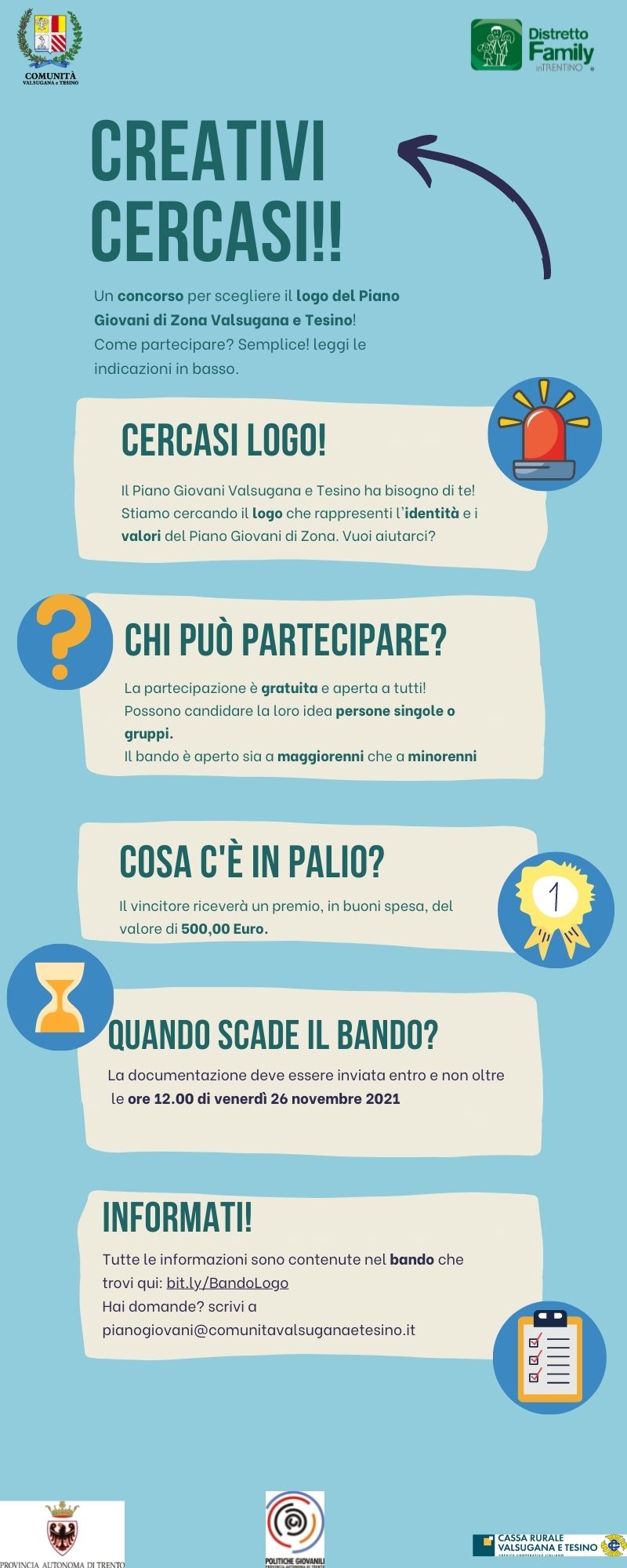 Il Piano Giovani di Zona Valsugana e Tesino cerca il logo che rappresenti l'identità e i valori.