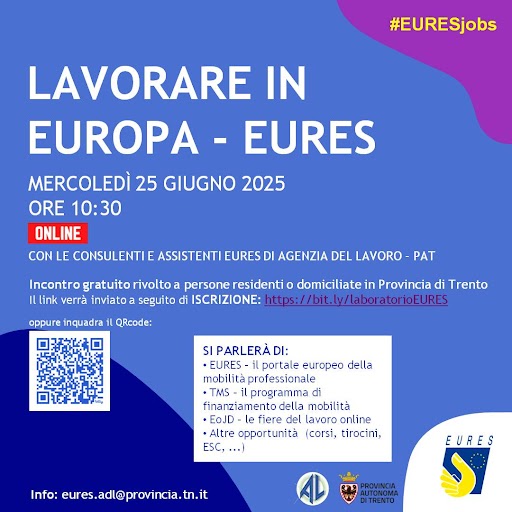 Mercoledì 25 giugno 2025, alle ore 10.30 è previsto un incontro formativo di gruppo pensato per illustrare le modalità/possibilità di ricerca di lavoro in UE/SEE (incl. Norvegia, Svizzera, Islanda, Liechtenstein).