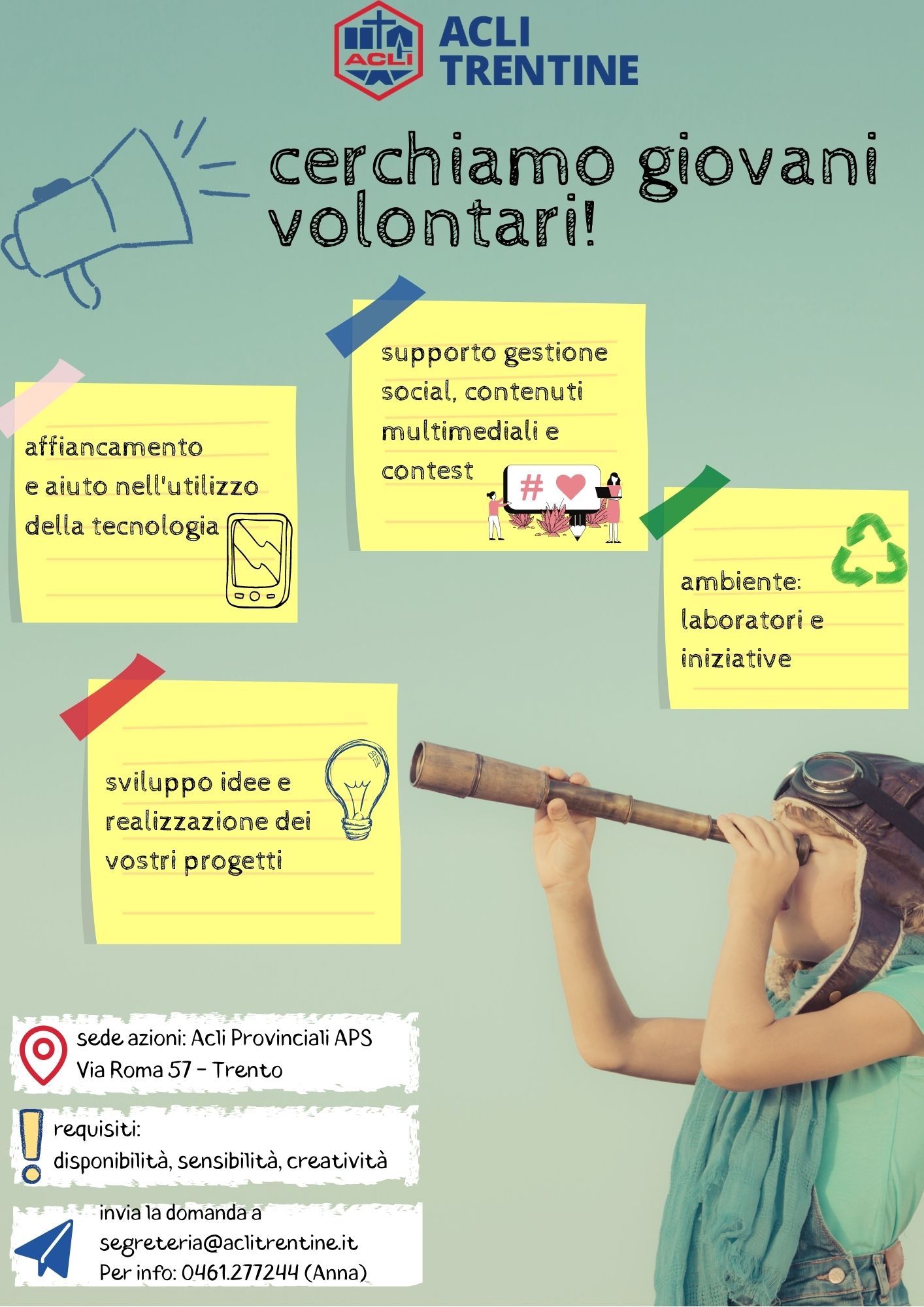 Le ACLI Trentine sono alla alla ricerca di un team di giovani volontari per una serie di progetti ed iniziative: